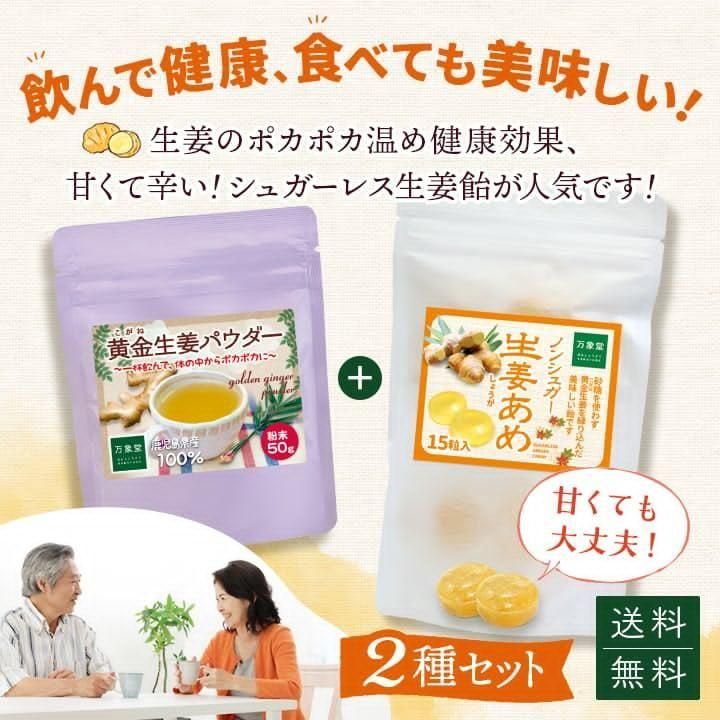 ◆黄金生姜パウダー50gとシュガーレス生姜飴15粒 2種セット