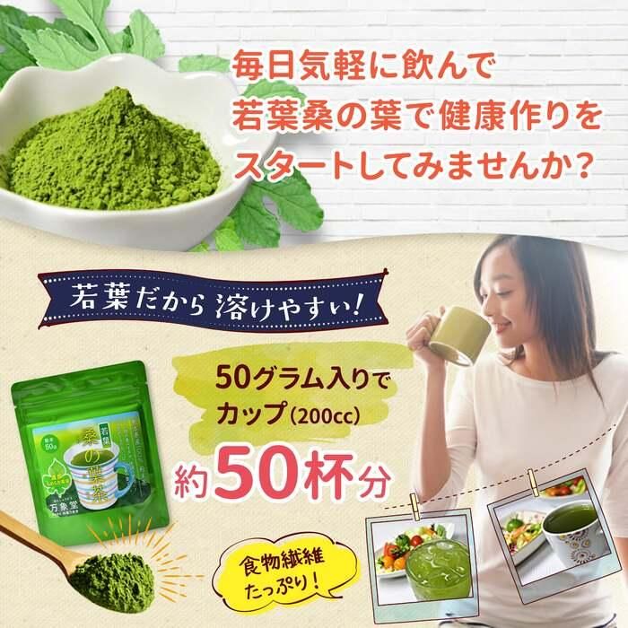 桑の葉の若葉を収穫後、粉末にし、更に独自の焙煎加工を行い、香ばしく飲みやすい風味に仕上げています。